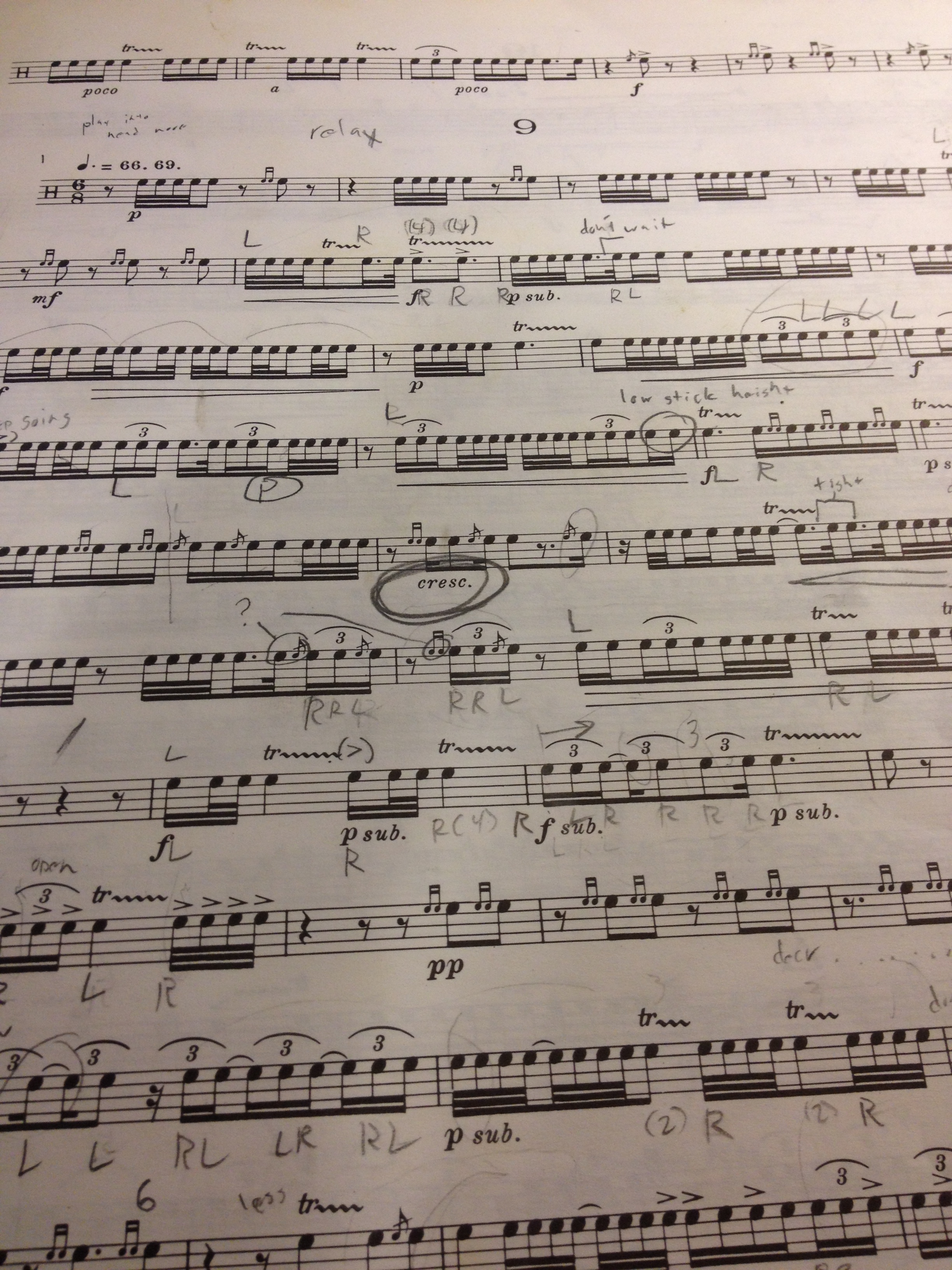 For some reason this etude reminds me of some of the Keiskleiriana etudes I have learned out of both book 1 and 2. This etude uses lots of the same rhythms but repeated in different ways and displaced over different beats. Subdividing is key to maintain a steady pulse as well as great dynamic control. I have had sympathy for the recording engineer for this project. Snare drum is one of the most difficult instruments to record and have dynamic range. Shout out to Brandon Johnson! This would be one etude I would really be interested to see Rob’s Starter Stickings as some of the quick dynamic changes require create solutions to pull off. Rob’s dynamic control is great and very consistent throughout.